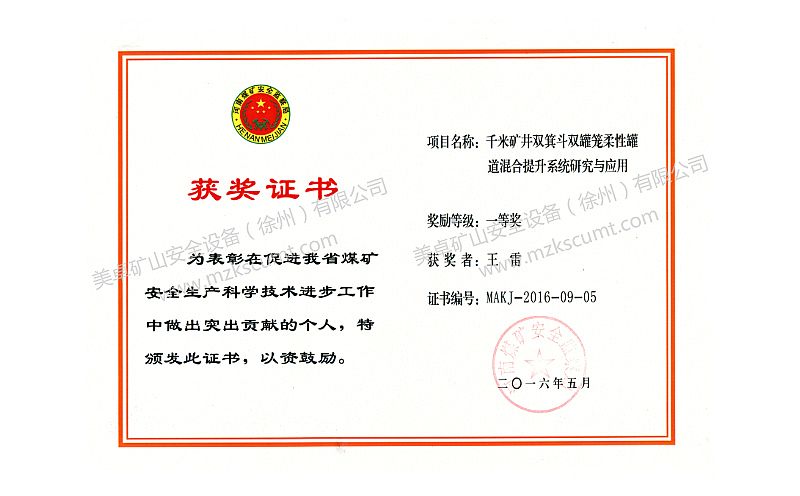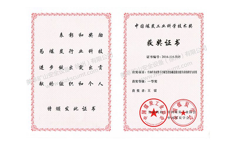 中國(guó)煤炭工業(yè)科學(xué)技術(shù)獎(jiǎng)一等獎(jiǎng)