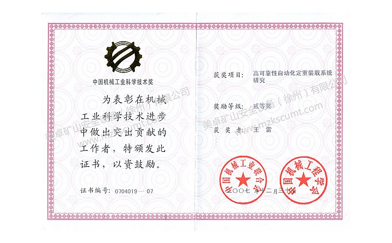 裝載系統(tǒng)研究貳等獎(jiǎng)