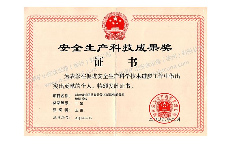 安全生產(chǎn)科技成果獎(jiǎng)二等獎(jiǎng)